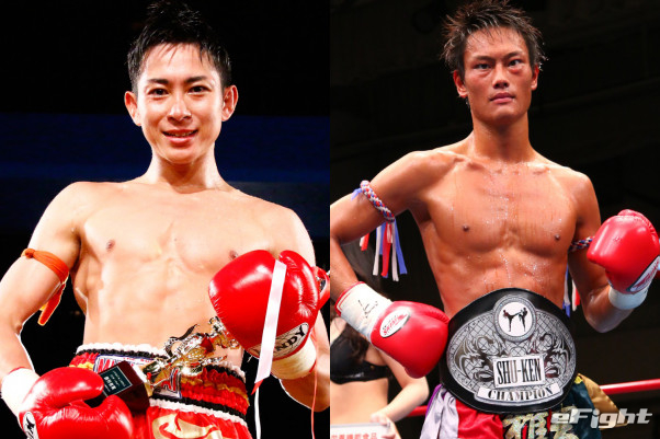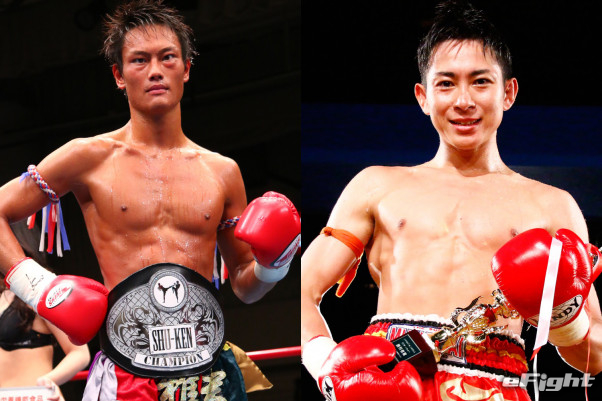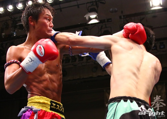 激しい打ち合いを展開する津橋(左)