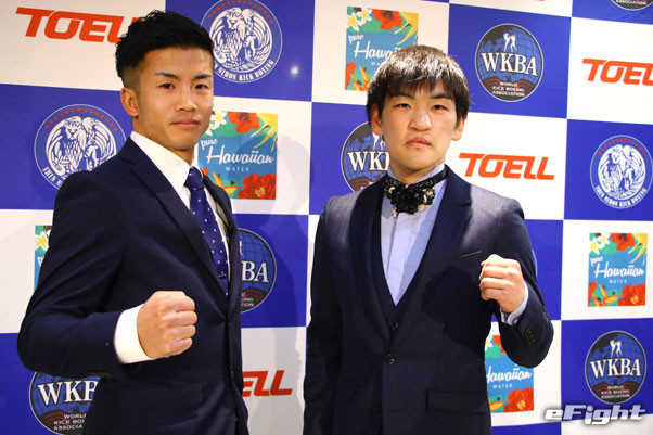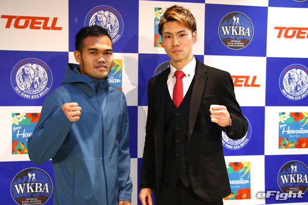 5対5交流戦の大将戦で対戦するポーンパノム(左)と潘(右)