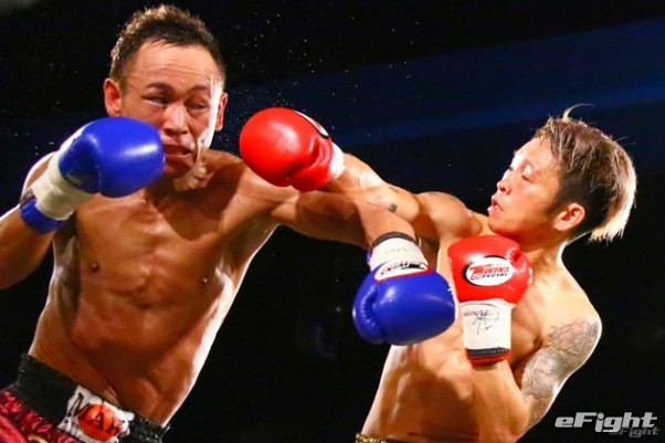 島野(左)が早くも次の王座を狙う。相手は3冠王のテープジュン(右)
