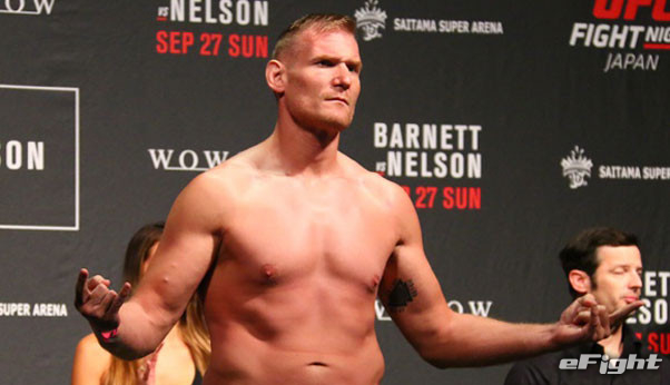 2015年9月、UFC JAPANで試合を行ったジョシュ。この時の対戦相手ロイ・ネルソン(左)も現在はベラトール参戦