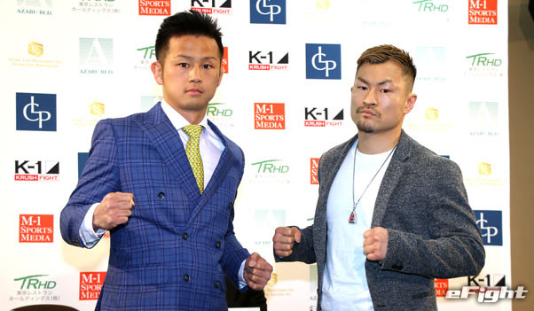 再起を目指す郷州(左)と初KO勝ちの勢いで上位の選手を喰いたい友尊(右)