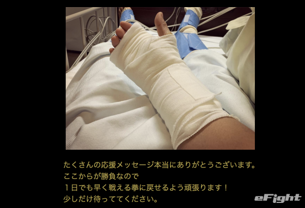 ブログに掲載された手術後の右手(武尊オフォシャルブログより)