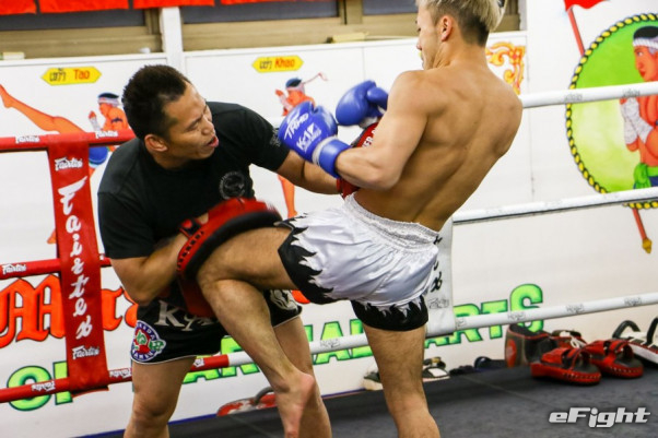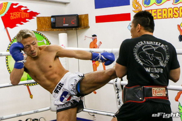 膝蹴りがグサリ! 公開練習で強烈な膝蹴りを叩き込む準也