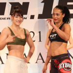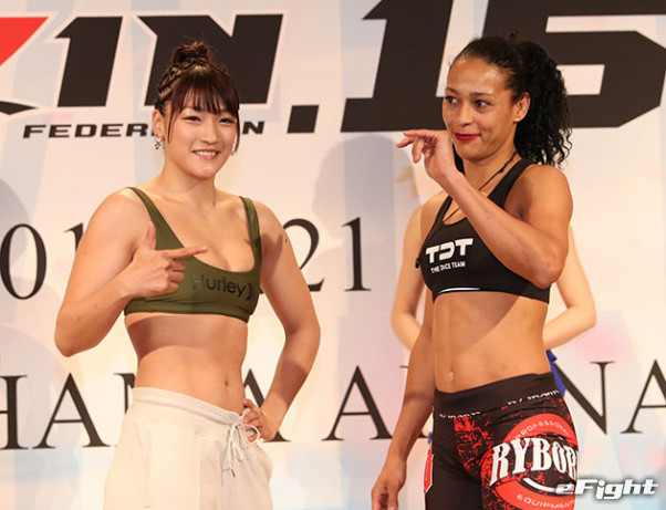 晴れやかな笑顔でシュートポーズを決めるRENA(左)。フランソワも優しい眼差しを向ける