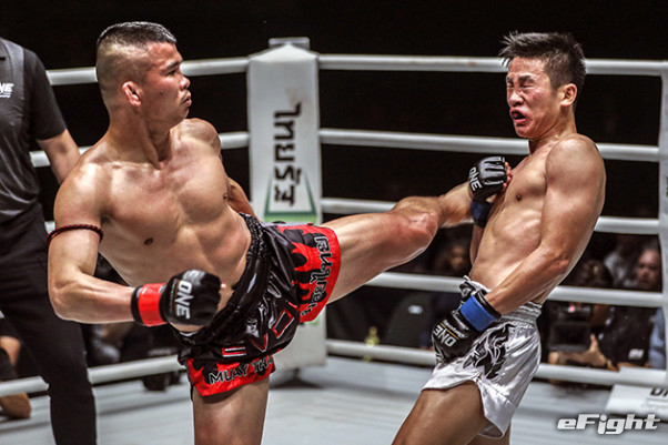 鈴木を王座戦で迎え撃つのは、ムエタイの超強豪ノンオー(左)