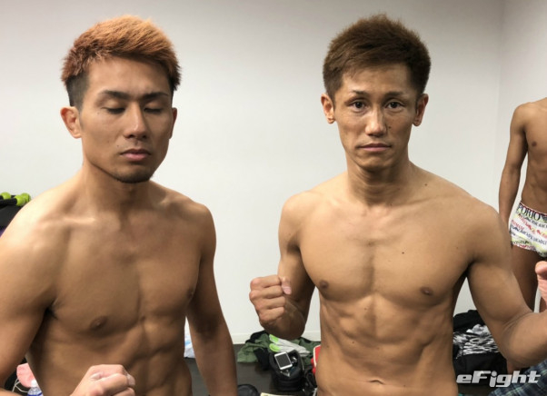 WMAF世界スーパーバンタム級王座決定戦で対戦する大久保拓(右)と知花デビット(左)