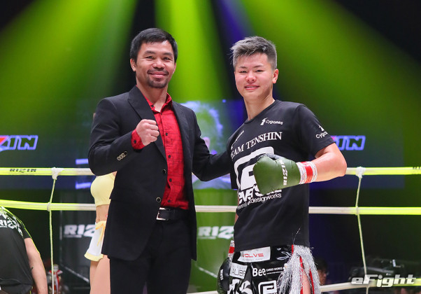 パッキャオと並んで2ショット撮影する那須川天心 (c)RIZIN FF