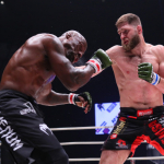 モーに右フックを叩き込むプロハースカ。パンチを連打しTKO勝利を果たした。(C)RIZIN FF
