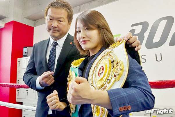 所属ジムの加山利治会長(左)と吉田