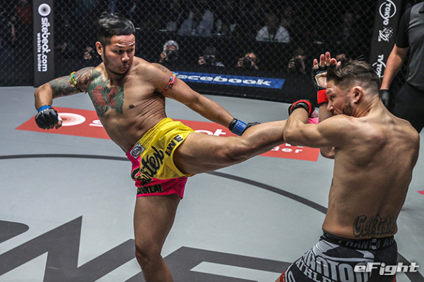 現在2連敗中と苦境に立たされたサワー(右)。3月の日本大会では、ムエタイ8冠王ヨードセングライ(左)に2R・TKO負け。ともに今回のグランプリに出場する