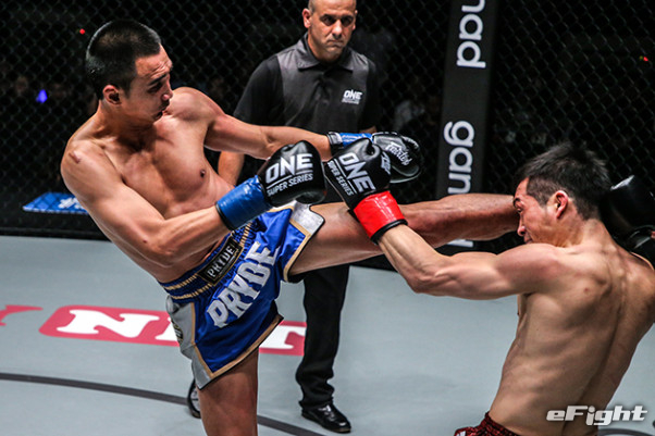 ペットモラコット(左)は強烈な左の蹴りで健太(右)を一蹴
