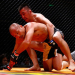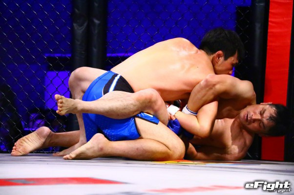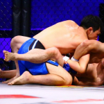 近藤有己に下からアームロックを仕掛けるミノワマン