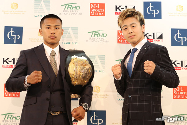 初防衛戦に臨む江川(左)とTESTU(右)