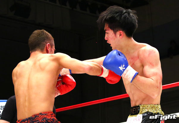 今年3月、右ストレートで2度ダウンを奪い西京佑馬(右)が王座奪取