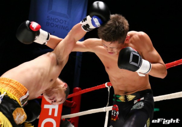 豪腕・大月(左)と相フック勝負でダウンを取った西岡(右)