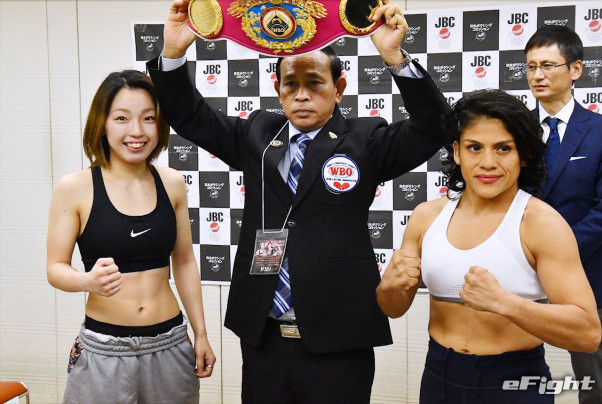 計量をパスしファイティングポーズをとる佐伯とロペス