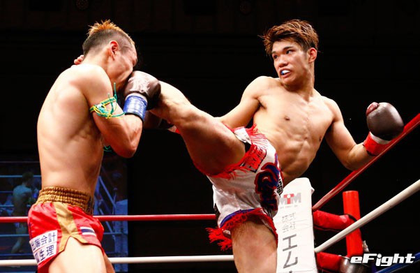 右ハイキックを思い切り相手の顔面にブチ込む老沼