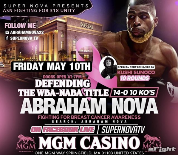 5月10日行われるアブラハム・ノヴァの試合のポスター。この試合から配信が始まる。