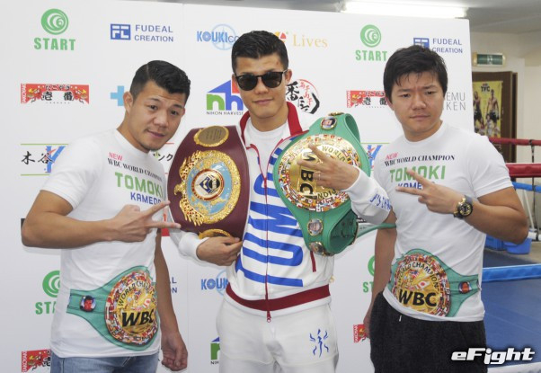 昨年11月、和毅が暫定王座を獲得した一夜明け会見での亀田三兄弟。和毅は「バルガスと戦いたい」と会見で語っていた。