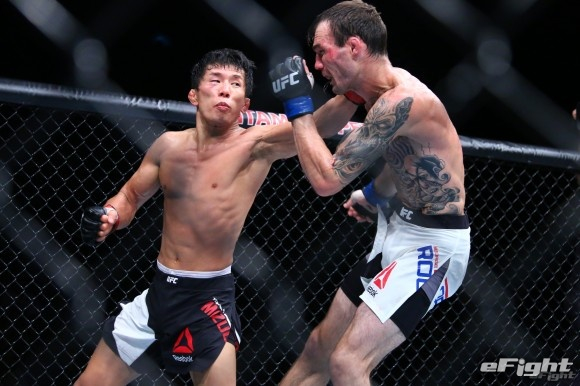 UFCでパンチを頻繁にヒットさせ勝利する水垣=2015年9月