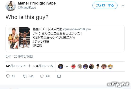 ケイプが皇治についてコメントした