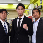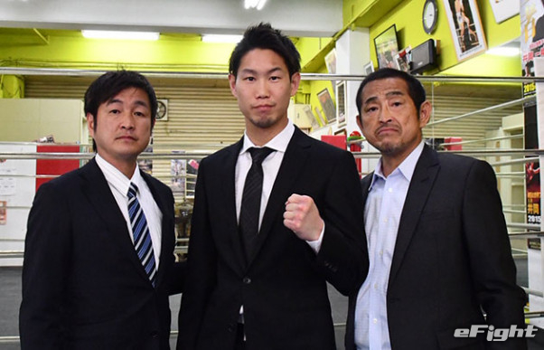IBF世界ライト級挑戦者決定戦へ意気込みを見せる中谷正義(中央)
