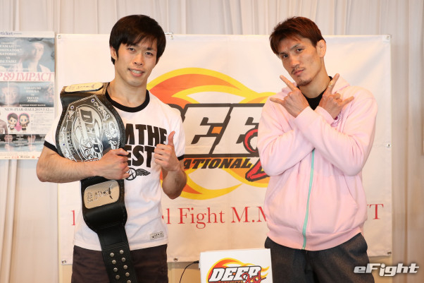 DEEPフェザー級タイトルを争う弥益(左)とDJ.taiki