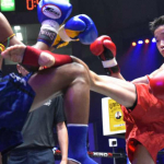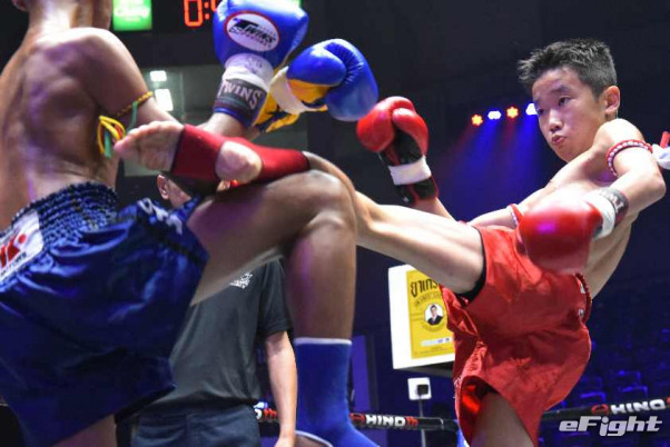 今年3月、ルンピニースタジアムにて、石井(右)は堂々とした試合運びで相手を圧倒した