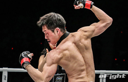 右ストレートをヒットさせ、相手の顔を歪ませる健太
