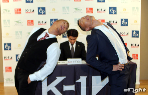 堀井式のメンチを切り合う堀井(右)