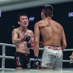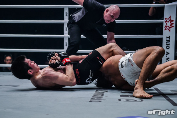 1Rでの青木の腕十字。完全に極まり、勝負あったかと思われたがリーは苦しみながらも脱出した。