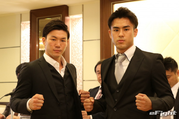 初代スーパーバンタム級王座決定トーナメントの出場が決定した江幡塁(左)と小笠原瑛作