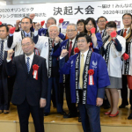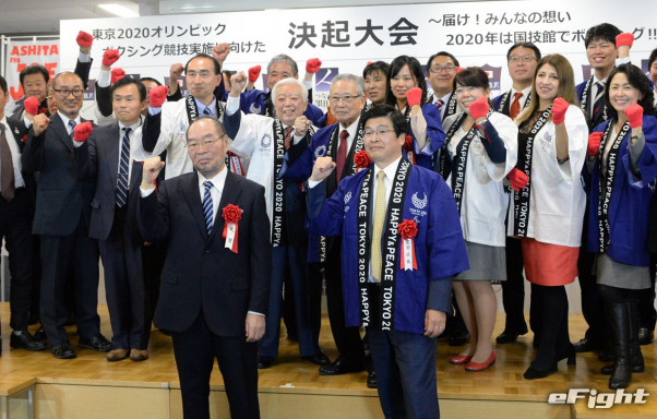 開催予定地の墨田区では競技実施のための決起会や署名活動も昨年から行われてきた。前列左はガッツ石松氏