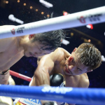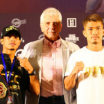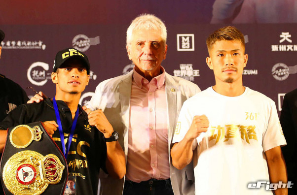 会見に臨んだ木村翔(右)と王者カニサレス