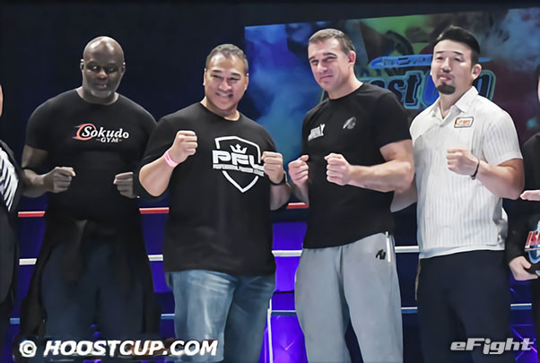 K-1レジェンドファイター4人が登場(前列左からアーネスト・ホースト、レイ・セフォー、ピーター・アーツ、武蔵)