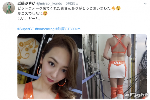 今年5月auのレースクイーンとしてサーキット会場に立つ近藤みやびさん @miyabi_kondoより