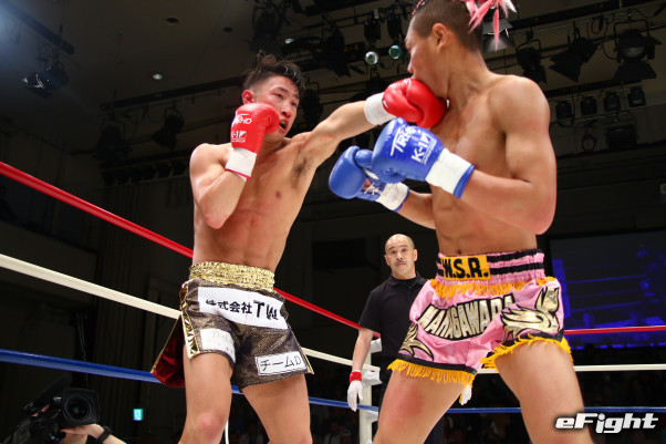 豪快なパンチを突き刺す伊藤、優谷をKOで沈めた