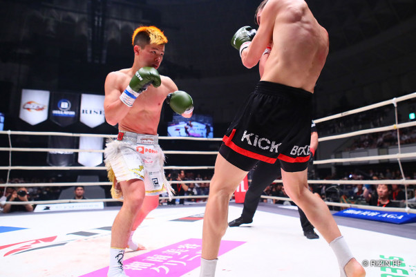 左手左足が後ろになるサウスポースタイルの那須川天心