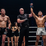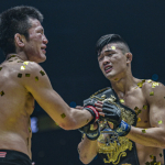 1Rでの青木の腕十字。完全に極まり、勝負あったかと思われたがリーは苦しみながらも脱出した。