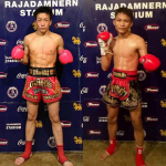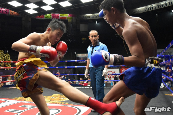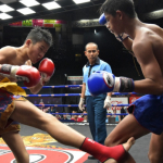 前回(4月7日)のラジャダムナン大会でローキックを有効に当てる押川