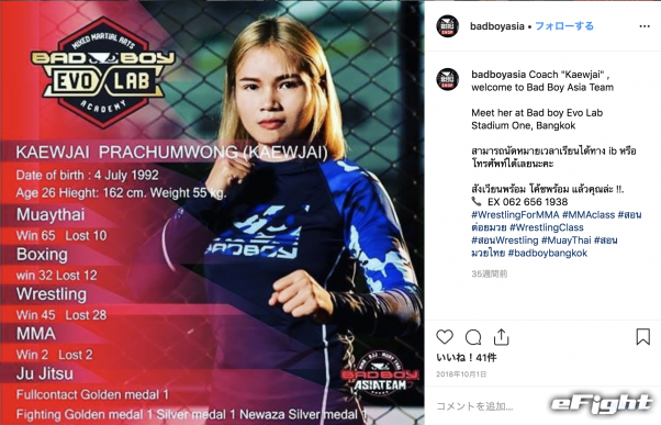 ゲオチャイの戦績が、彼女が指導するジムのSNSに掲載されていた。