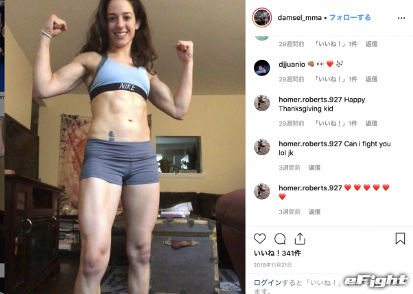柔術の練習をかなりしているというリンジー。右下腹部には「柔術」の文字のタトゥが(リンジーのインスタdamsel_mmaより)