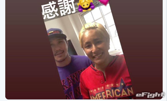 美憂が息子のアーセンと共に激励動画を送ってくれたことをSNSでも報告(@MiyoBluedog より)