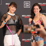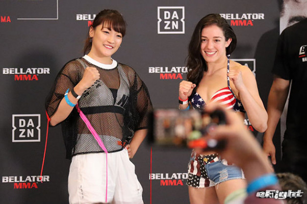 前日計量で対戦相手・リンジーと並んだRENA(C)RIZIN FF