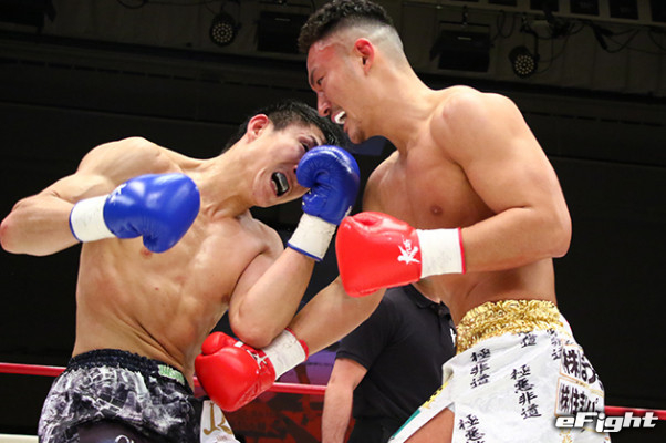 鬼気迫る表情でボディを攻めていく神保