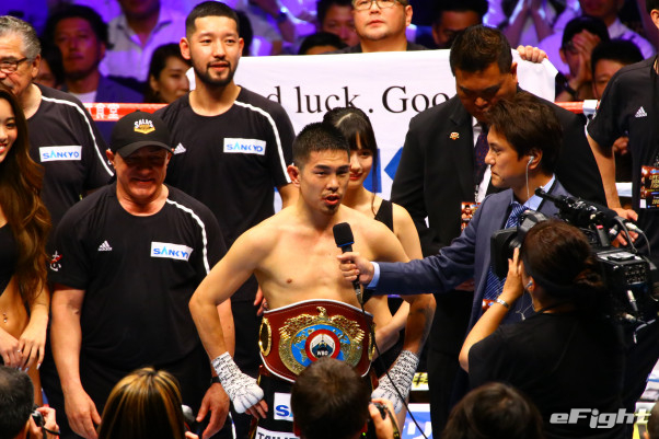 ヒーローインタビューでは彼女のカメラ目線が気になるとの声も多かった。立つ距離が井岡と近すぎた。
