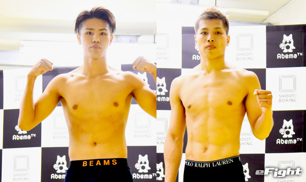 メインの両者が計量パス、階級上の中島(右)と戦う海人(左)