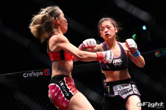 デビュー戦でしなしさとこ(左)と戦った、高校1年生の時のイェジ