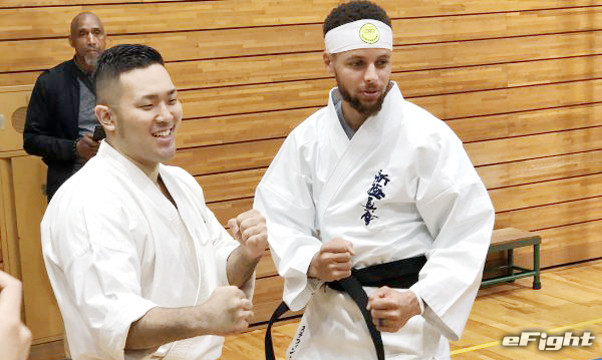 ステフィン・カリー(右)、演武を披露した元全日本王者の入来建武