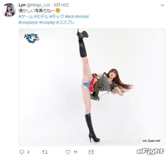 自身のSNSでは美脚も披露している武道家のLYNさん(@Ringo_Lynより)